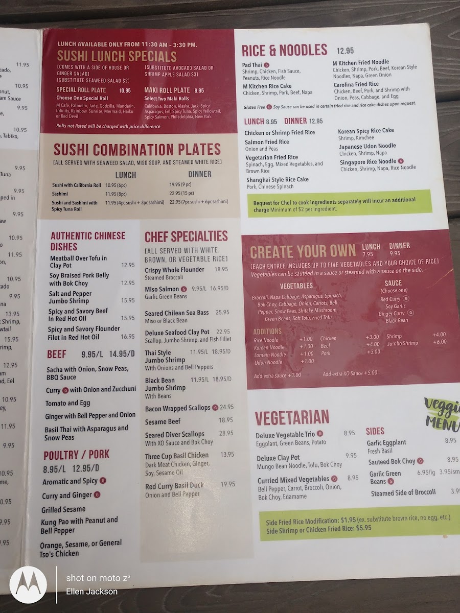 The menu at M Cafe - SC 29212 offers a variety of Asian cuisine with a focus on dishes featuring fresh seafood, rice, and noodles. The selection is organized into key categories, making it easy to choose according to your dining preferences.